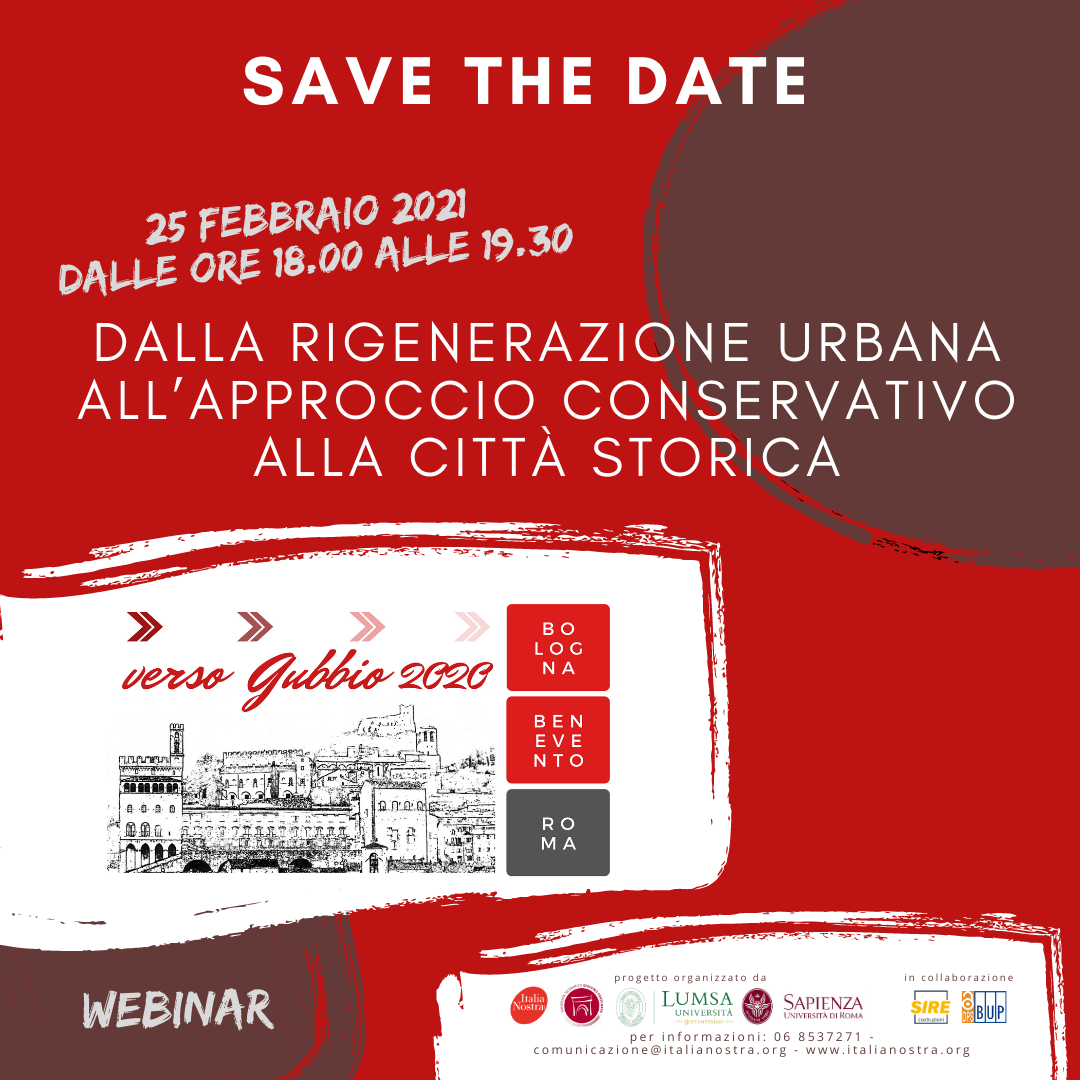 Riflessioni sulle strategie per la salvaguardia dei centri storici a 60 anni dalla Carta di Gubbio”, mentre con i due webinar previsti “Tutela e valorizzazione dei centri storici a rischio sismico” (21 gennaio 2021) e