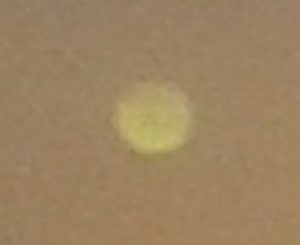 Ciò che successivamente abbiamo notato riportando ed esaminando le foto sul computer è un non identificabile globo sulla parte sinistra dell’inquadratura;  nella prima foto è appena sopra la linea di orizzonte del mare (foto 1) mentre poi, descrivendo un arco, nella seconda foto effettuata otto secondi dopo si posiziona ben più in alto spostandosi verso destra (foto 2).