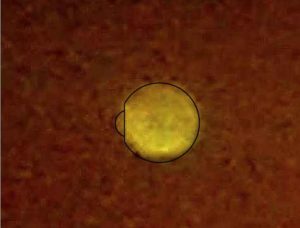 Ad un ingrandimento effettuato sul pc la forma risulta sferoidale ma con uno schiacciamento ed una protrusione sull’asse mediano del lato sinistro (foto 3 e foto 4 profilata). Alcune foto effettuate nello stesso periodo dalla stazione spaziale orbitante mostrano un oggetto non identificato con una geometria simile ma inquadrato di faccia (foto 5/6).