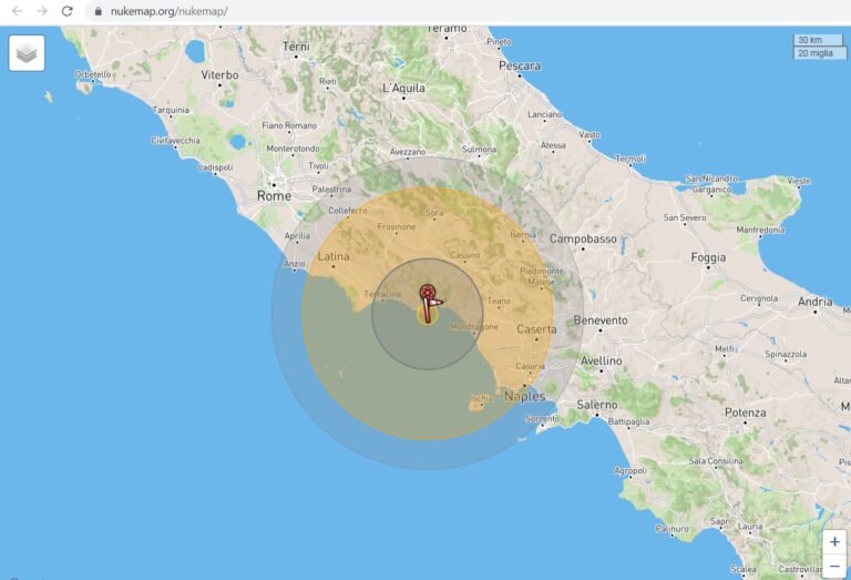 Il simulatore NukeMap mostra scenari di guerra apocalittici. Vediamo gli effetti sul Golfo di Gaeta