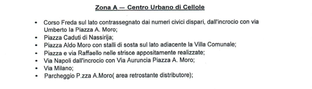 Dal “Regolamento comunale per l’istituzione ed il funzionamento di parcheggi a pagamento senza custodia”, approvato con la Delibera n.17 del 24-06-2020, si evince che anche alcune aree del territorio cellolese saranno riservate alla sosta a pagamento, ma non sono state previste agevolazioni per i residenti.