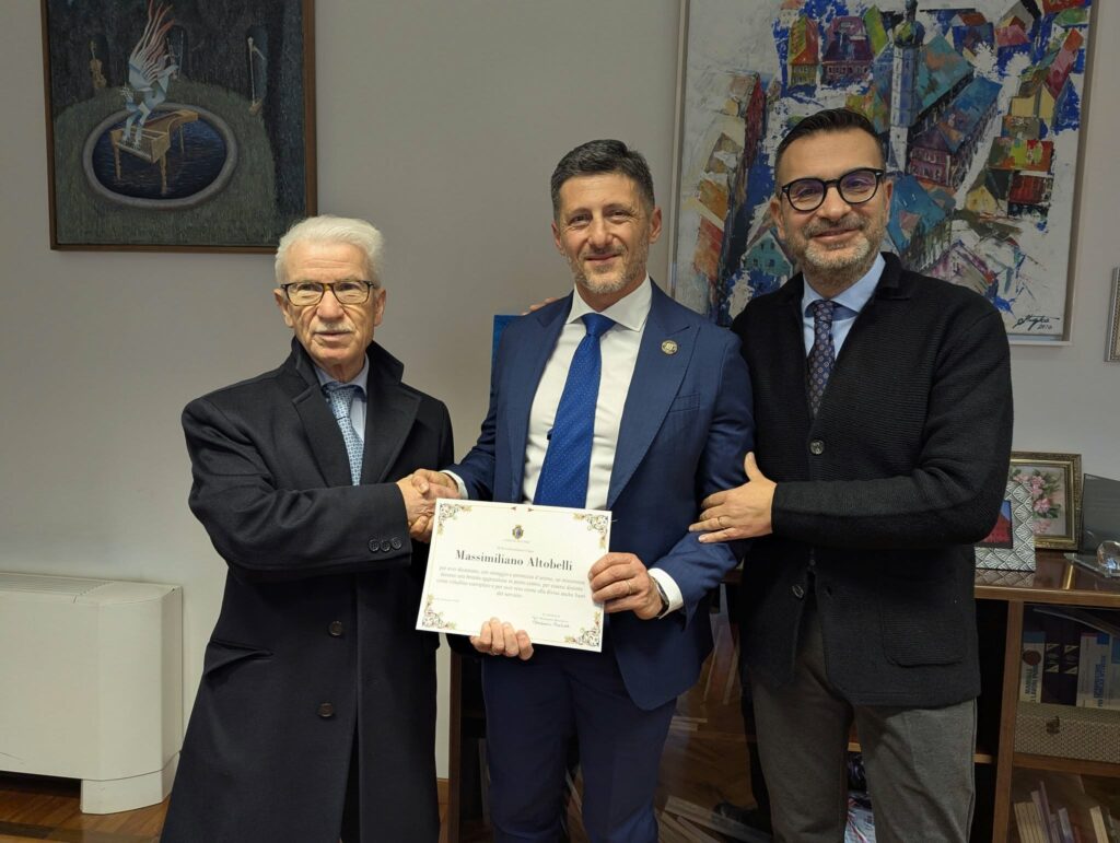 Disarma un minore durante una violenta aggressione: riconoscimento simbolico per Massimiliano Altobelli – Al Sovrintendente capo Massimiliano Altobelli per aver disarmato, con coraggio e prontezza d’animo, un minorenne durante una brutale aggressione in pieno centro, per essersi distinto come cittadino esemplare e aver reso onore alla divisa anche fuori dal servizio.
