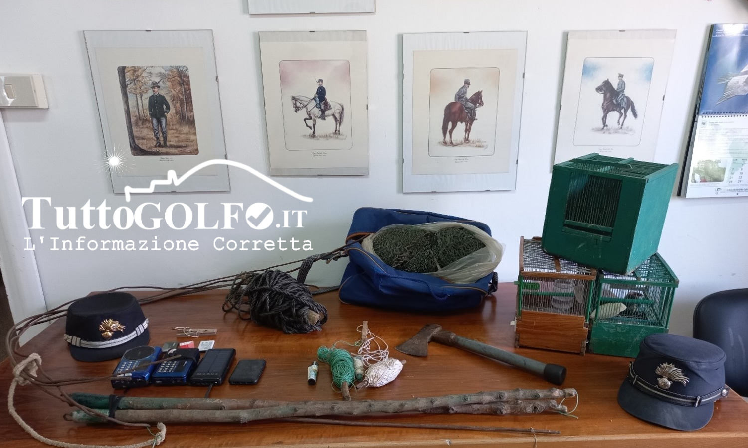 Il bracconiere aveva già catturato alcuni volatili, infatti i militari rinvenivano 3 gabbie in legno e