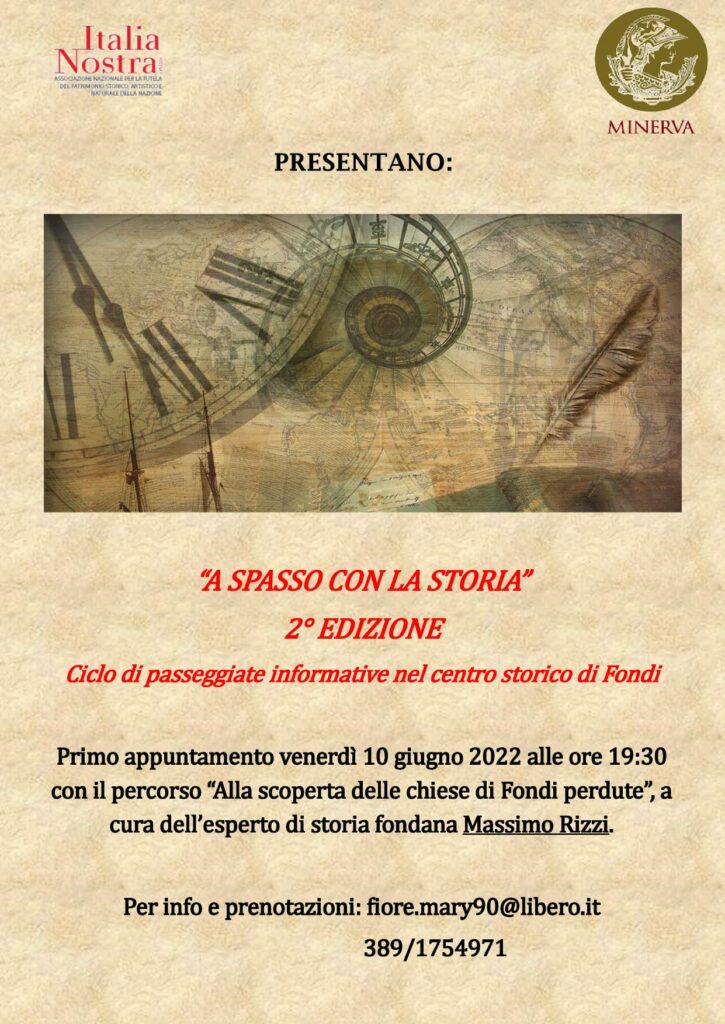 Maria Luisa Fiore presidente sia della Sezione di Fondi e dei Monti Ausoni di Italia Nostra e sia dell’associazione Minerva nel presentare la prossima iniziativa annota: “Sapete quante chiese ospitava la nostra bella Fondi in passato? Quasi 40! Dove si trovavano? Nel centro storico e al di fuori di esso. Volete saperne di più? Seguiteci nella straordinaria avventura alla scoperta della chiese di Fondi perduteEvento consigliato agli “affamati di storia e cultura”, reso possibile dalle ricerche del cultore di storia fondana e collezionista Massimo Rizzi”. Quest’ultimo è un ricercatore che va oltre alle notizie, documentandosi e, sovente, smantellando quelle che erano nel tempo solo delle credenze destituite di ogni autenticità. Vale la pena partecipare.