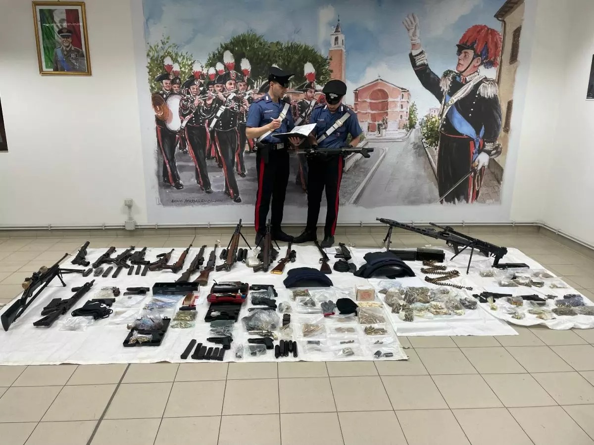 arsenale. In particolare, sono stati ritrovati 7 fucili mitragliatori, 7 fucili, anche a pompa, 6 carabine, 23 pistole, tra