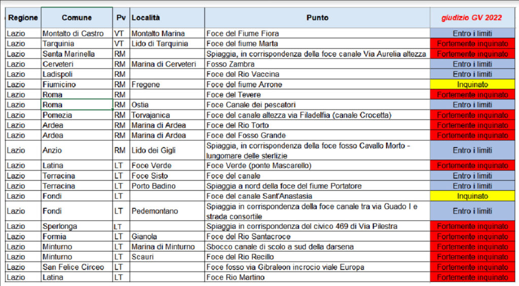 Acqua del mare nel Golfo di Gaeta. A confronto la tabella di Arpa Lazio, con quella di Goletta Verde. Dati diversi – Si resta perplessi dinnanzi alla differenza dei dati di due enti come ArpaLazio e Goletta Verde. Come dichiarato da Arpa Lazio (vedi tabella di seguito) la qualità delle acque del Golfo di Gaeta secondo il “Rapporto Balneazione 2022” è eccellente. Nel rapporto si legge: “…In linea generale, si può affermare che, dal punto di vista microbiologico, lo stato di qualità delle 223 aree di balneazione sottoposte a monitoraggio non ha mostrato criticità, eccetto alcuni superamenti riconducibili principalmente ad eventi di inquinamento di breve durata…”.