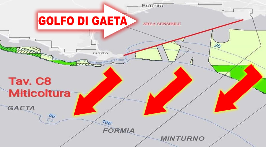 Come prima riflessione, siamo soddisfatti che la delibera di oggi tenga in considerazione quanto in parte espresso nella Delibera n.116 del 19/02/2010, delibera che istituiva “l’Area Sensibile del Golfo di Gaeta e dei bacini drenanti”; in un primo momento, infatti, non era stata considerata, ma dopo l’intervento delle diverse Associazioni del territorio in materia ambientale, la delibera è entrata come corpo integrante dell’atto di indirizzo odierno. Le aree, inoltre, in cui sarà possibile attuare attività di acquacoltura (Tav. B8 e Tav. C8) sono specchi d’acqua a quasi 4 km dalla costa. Ricordiamo che oggi gli impianti si trovano a molto meno di 2,5km dalla linea di costa. Questo consentirà di liberare l’area sensibile da allevamenti di pesci e cozze che l’hanno inquinata, deturpata, condizionando notevolmente la flora e la fauna, la biodiversità dell’habitat naturale e l’intera vita dell’ecosistema marino e costiero, oltre a pregiudicare le attività turistiche e sportive dell’intero tratto di costa che va da punta Stendardo al porticciolo romano di Gianola e in particolare, la costa di Vindicio.