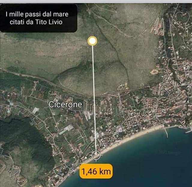 Possiamo pertanto supporre, con buona probabilità, che l’intera proprietà di Marco Tullio Cicerone andasse dalla vetta della collina di Acervara fino al litorale di Vindicio dove, all’angolo orientale vi era un piccolo tempio di Apollo , come riferito successivamente da Plutarco.Viene anche facile pensare che cinque siti archeologici , allineati perfettamente in direzione sud-nord e confinanti con un ” vico ciceroniano ” di medievale memoria, possano essere appartenuti ad una stessa persona e che questa proprietà sia stata propria quella di Marco Tullio Cicerone.