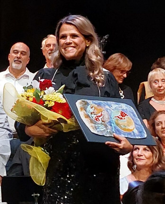 Auditorium di Roma – Ottobrata romana. Premio Gabriella Ferri a Tosca rappresentato da una maiolica di Raffaella Fusciello dal titolo: MELOGRANI – tecnica: affioranti. Spiega l’artista: “Ho pensato di realizzare per questo premio il melograno perché l’ottobrata romana mi riporta a pensare alla frutta che c’è in questo periodo: uva, castagne, cachi ma soprattutto il melograno che è il simbolo dell’abbondanza e del buon augurio ed è questo che ho pensato per Tosca”. Con sorpresa, il direttore dell’auditorium, ha aggiunto che la Ferri ha avuto nel suo repertorio musicale, la canzone “ fiori di melograno’ . Quindi non poteva esserci un premio più opportuno di questo. Vivissimi complimenti a Raffaella Fusciello, che si fa sempre apprezzare per la sua bravura artistica.