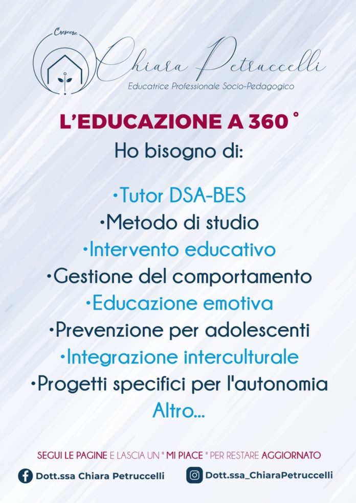 Mi occupo di “educazione” rivolgendomi ad individui di diverse fasce d’età ,offrendo diversi tipi di servizi, quali: