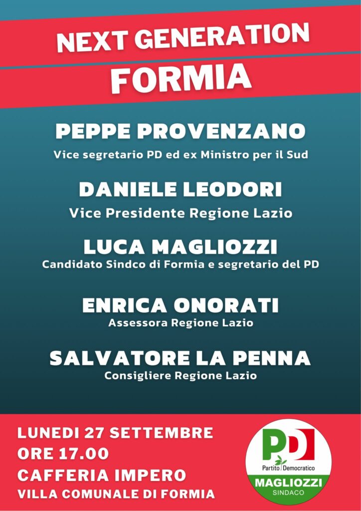 FORMIA, 27 settembre, bar impero – Finanziamenti europei, fondi regionali e Next Generation. Sarà questo il tema della maratona tematica che si terrà oggi 27 Settembre a Formia, presso la Caffetteria Bar Impero in Villa comunale, con il candidato sindaco Luca Magliozzi.