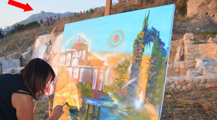 pittura dal vivo, una forma di arte contemporanea, definita pittura musicale dal vivo e arte di strada