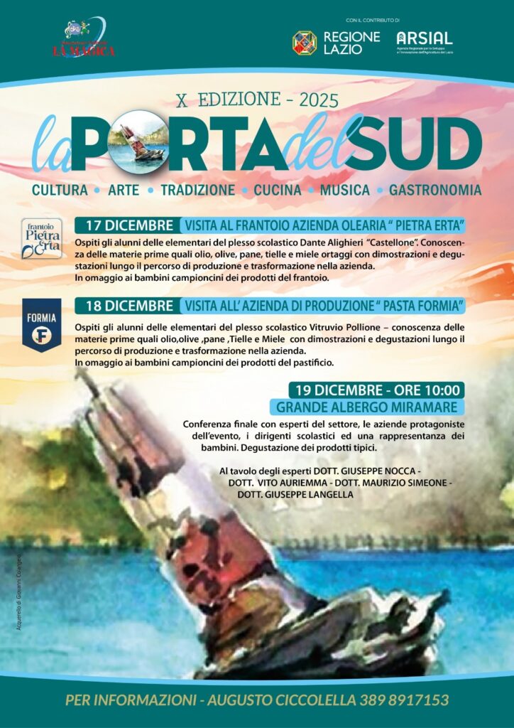Prende il via domani la X edizione de “La Porta del Sud”, iniziativa ormai consolidata sul territorio e dedicata alla valorizzazione delle tradizioni e della formazione delle nuove generazioni. Protagonisti dell’evento saranno oltre 100 bambini delle scuole elementari di Castellone e della Pollione, coinvolti in un percorso educativo e ludico pensato per avvicinarli alle eccellenze locali.