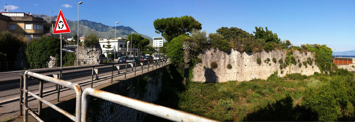 Per consentire il passaggio della Litoranea sono stati demoliti circa 12 metri lineari del muro di Nerva in un punto in cui si innalzava per oltre 3. Il Ministero competente, dopo aver sottoposto il progetto al Consiglio Superiore delle antichità e Belle arti, espresse il 22 giugno 1954 il seguente parere: “Parere assolutamente contrario all’attuazione della Litoranea secondo il tracciato proposto dalla Cassa per il Mezzogiorno in quanto in esso, svolgendosi a valle dell’abitato, oltre a presentare il grave inconveniente di separare l’agglomerato cittadino dal mare, avrebbe arrecato irreparabile danno all’ambiente paesistico circostante e ai resti archeologici ivi esistenti”.