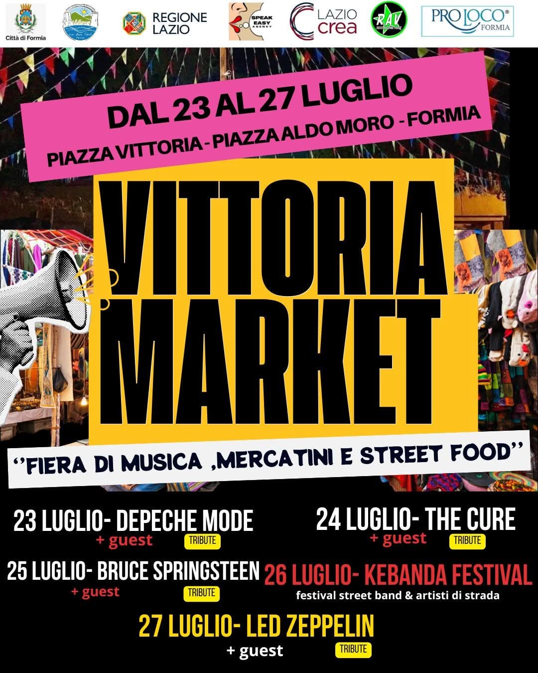 Formia si riempie di colori, musica e sapori: arriva la prima edizione del Vittoria Market – Dal 23 al 27 luglio 2025, la città di Formia accoglie un nuovo evento tutto da vivere: nasce Vittoria Market – I Edizione, un progetto, in collaborazione con il Comune, che unisce arte, musica, artigianato e street food in un contesto creativo e vibrante. La manifestazione si terrà in Piazza Vittoria e nel vicino Piazzale Aldo Moro, trasformando il cuore cittadino in uno spazio aperto all’espressione artistica e all’incontro tra culture e talenti. L’iniziativa, organizzata dall’associazione Speakeasy Formia, si propone come un vero e proprio contenitore culturale, dove le persone potranno passeggiare tra bancarelle di artigianato locale, assistere a performance dal vivo, assaggiare piatti originali provenienti dal mondo dello street food e scoprire le creazioni di artisti emergenti.