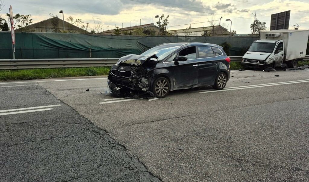 FOTO – Grave incidente sulla variante Appia a Formia: traffico in tilt e paura tra gli automobilisti – Ancora un grave incidente stradale scuote il territorio di Formia. Nel primo pomeriggio di oggi, intorno alle ore 14:30, un violento scontro si è verificato lungo la variante Via Appia, nei pressi del Vivaio Valerio.Secondo le prime informazioni, ancora frammentarie, nel sinistro sarebbero rimasti coinvolti tre veicoli: una Kia nera, un furgone Iveco e una Toyota nera. Proprio su quest’ultima si sono attivati gli airbag, segno della forte intensità dell’impatto.