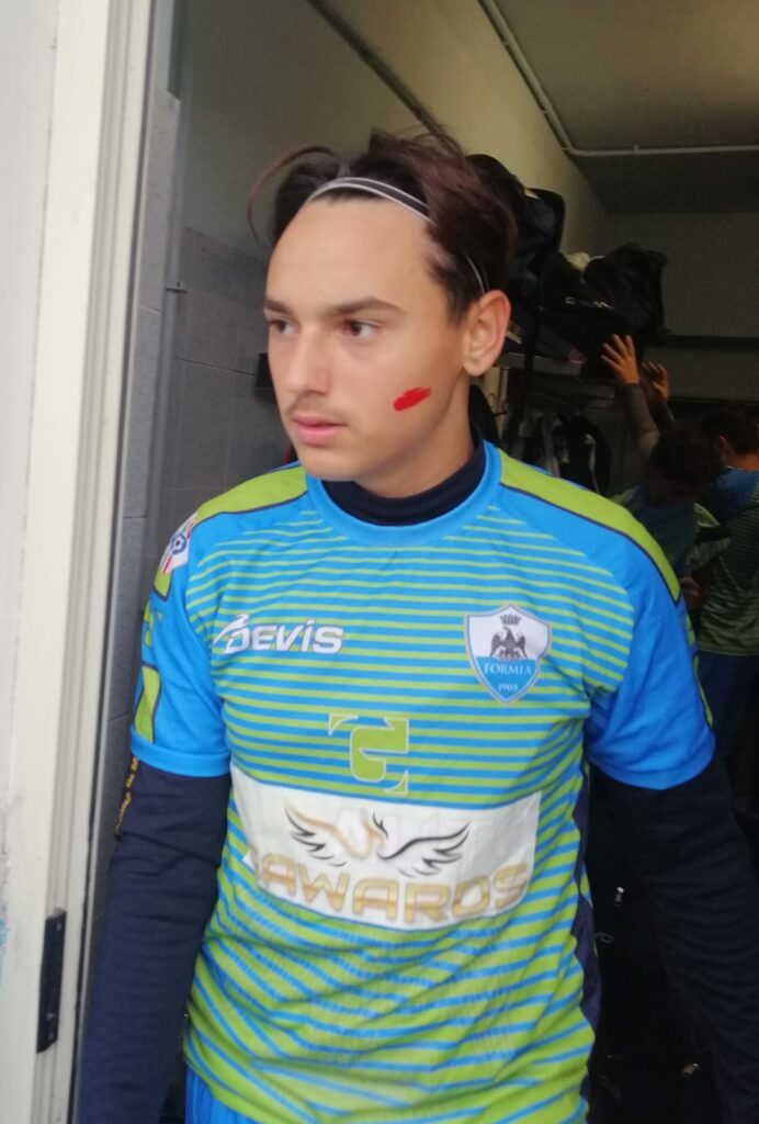 Gara under 16 Regionale Girone: Formia pareggia in casa dell’Albacynthia – Lo stadio si presenta al limite del regolamento per le sue dimensioni sia in lunghezza che in larghezza, condizione per la quale le squadre ospiti sicuramente vengono penalizzate in quanto non abituate nell’esprimere il proprio gioco su campi ridotti. L’entrata in campo delle due squadre è nel segno della solidarietà per la violenza contro le donne, tutti i giocatori e gli staff tecnici con il simbolo rosso sul viso, come si può evincere dalla foto di squadra in copertina. La formazione del Formia messa in campo dal dinamico Mister Giovanni Zampella è la seguente: Stefano Pisano (Capitano), Roberto De Santis (Vice Capitano), Davide D’Onorio De Meo (Portiere), Gabriele Criscuolo, Andrea Cesarano, Andrea Bove, Piercarlo Camerota, Luigi Esposito (capo cannoniere nel Formia di cui pubblichiamo la foto singola), Koen Samuel Caliman, Gennaro Andrea Fedele, Gabriel Rusciano (secondo portiere), Francesco Guido Caiafa, Vittorio Conte, Sergio Bandierini, Luca Russiello, Emanuele Di Rienzo, Ferdinando Ponticelli, Christian Vezza, Riccardo Frolli. Passando alla cronaca, l’Insieme Formia comincia la gara subito in attacco con tre occasionissime nei primi 5 minuti di gioco. Ma è l’Albacynthia che passa in vantaggio al 7° con un goal molto dubbio per la posizione in fuorigioco ma che l’arbitro convalida.