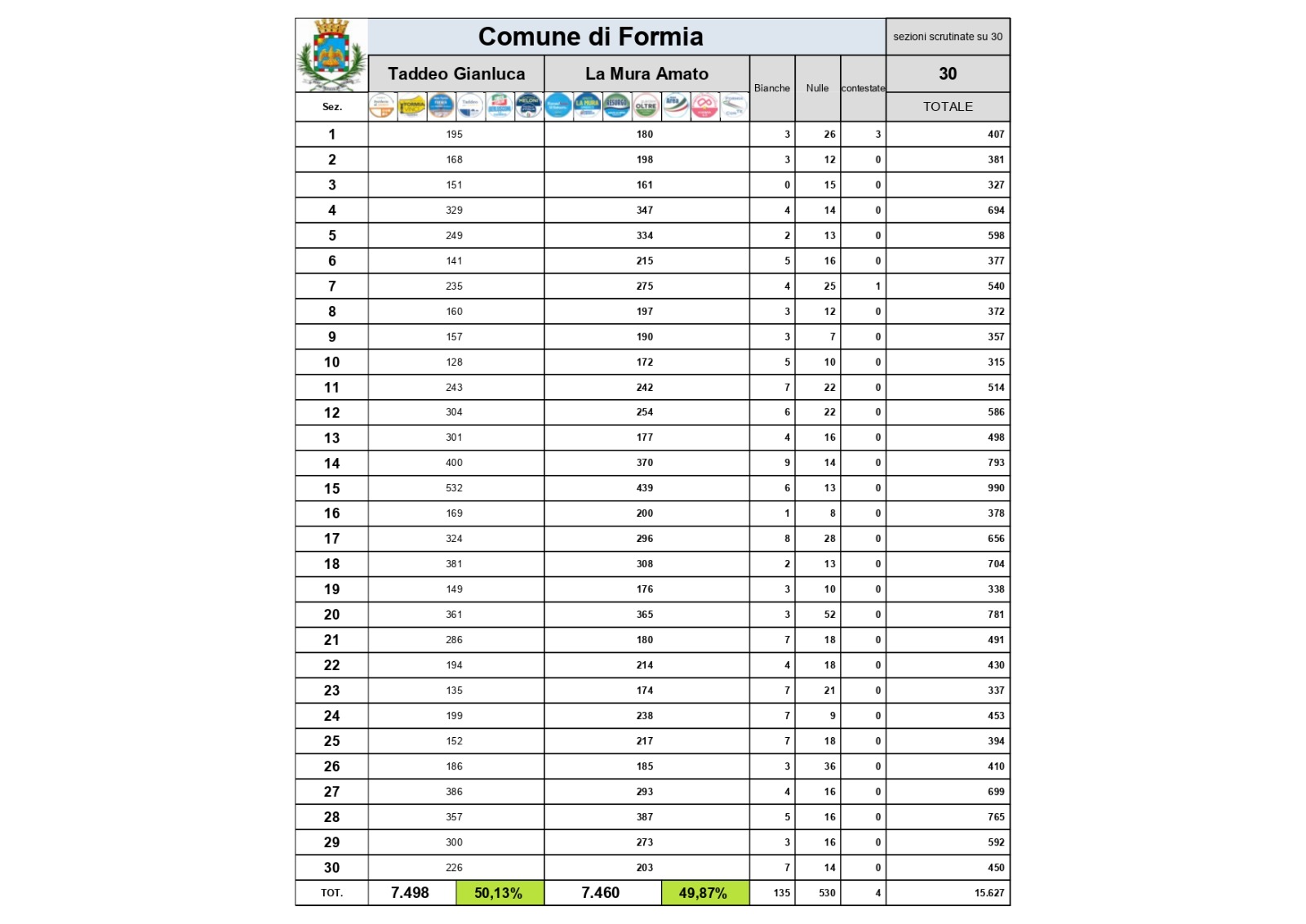 Di seguito l’intervista esclusiva fatta un mesa fa al neo sindaco: https://www.tuttogolfo.it/golfo-di-gaeta/formia/elezioni-formia-intervista-esclusiva-a-gianluca-taddeo/ e ancora il risultato di tutti i candidati: https://www.tuttogolfo.it/golfo-di-gaeta/formia/taddeo-il-piu-votato-segue-la-mura-e-magliozzi/
