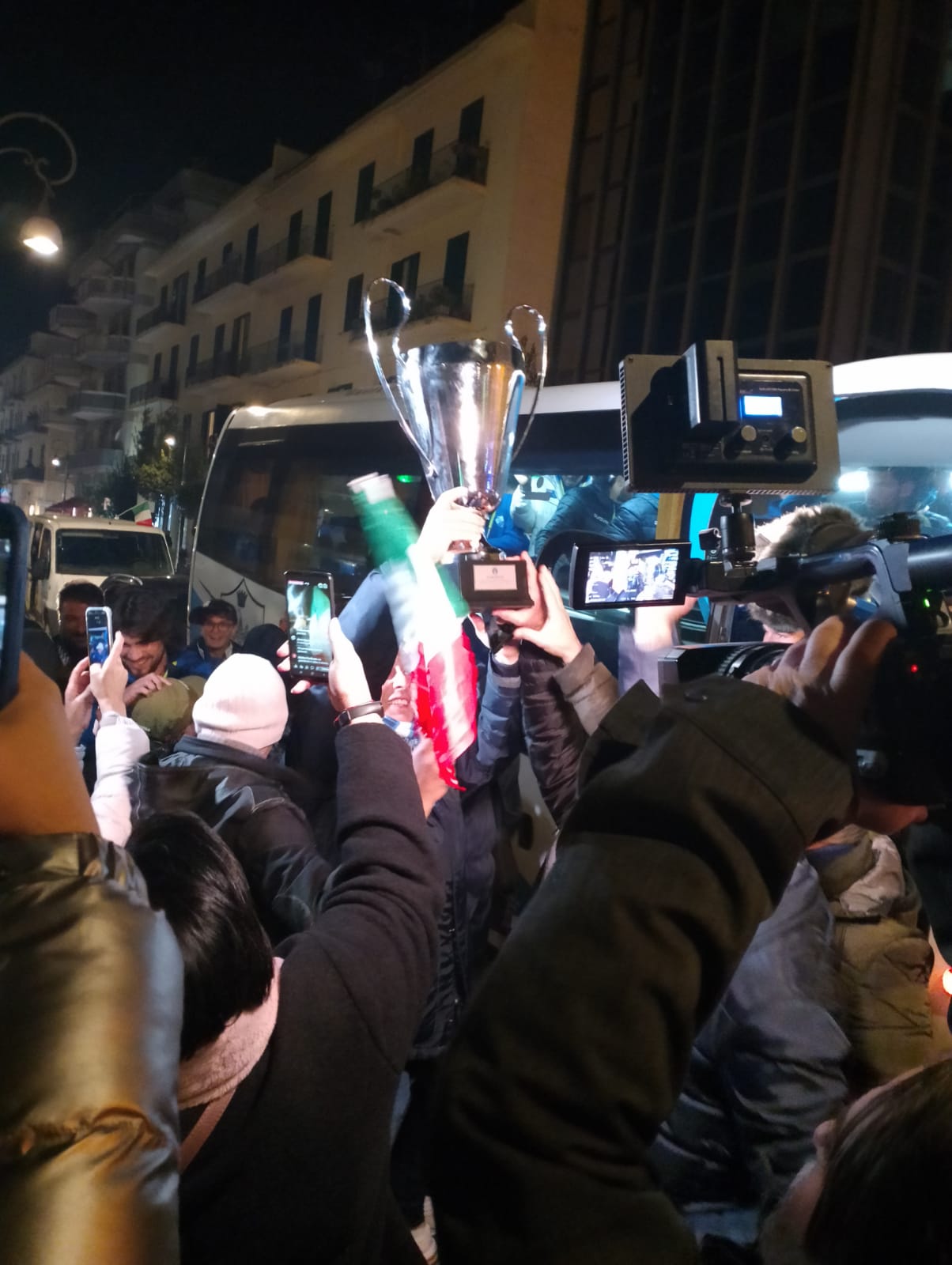 Formia, Notti Magiche per l’Insieme Formia – “Il successo ottenuto regala gioia e soddisfazione all’intera Città di Formia. Un orgoglio per tutti noi; che questo trofeo possa essere foriero di ulteriori traguardi per il calcio biancazzurro. Ho atteso il ritorno in Città della squadra e dei tifosi per ricevere una delegazione nella casa Comunale, con il desiderio di sollevare insieme la Coppa. Sentire i canti dei tifosi è stata un’emozione unica, vi abbraccio fortemente. Forza Formia, sempre!” Queste le parole del sindaco di Formia Gianluca Taddeo per l’ Insieme Formia, la quale ha vinto la Coppa Italia di Eccellenza laziale. Di seguito le foto: