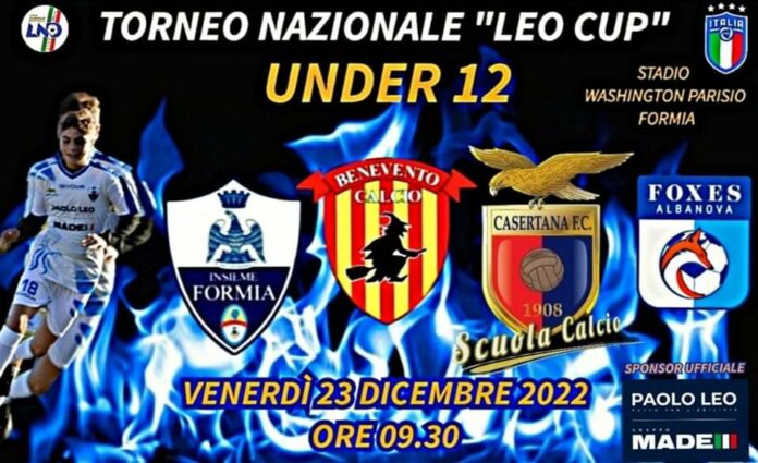 Il Washington Parisio ospiterà il torneo nazionale LEO CUP. La formazione Under 12 dell’Insieme Formia, (la foto della squadra è stata realizzata in occasione dell’incontro per il Monitoraggio per l’attività di base e incontri AST con i tecnici federali FIGC svolto a Maranola in data 18 novembre scorso. La squadra formiana è guidata da Mister Vincenzo Migliore, responsabile tecnico dell’attività di base e Davide Mastantuono, coadiuvati dallo staff del settore. Sarà impegnata in un quadrangolare di grande valenza calcistica. L’Under 12 si confronterà con i coetanei del Benevento Calcio, della Casertana Scuola Calcio e del Foxes Albanova (società che opera nel casertano, a Casal di Principe). Giovani promesse del calcio di tre diverse province si confronteranno lealmente e correttamente. L’evento si disputerà l’antivigilia di Natale, venerdì 23 dicembre, fischio d’inizio fissato alle ore 9.30. Lo Sponsor Ufficiale è Paolo Leo, titolare di un’affermata azienda di materiale edile presente in territorio formiano. Un consiglio: organizzatovi per lo shopping natalizio nel giorni precedenti, il 23 riservatelo allo sport, a seguire calciatori in erba che credono in quello che fanno e ci mettono l’anima.