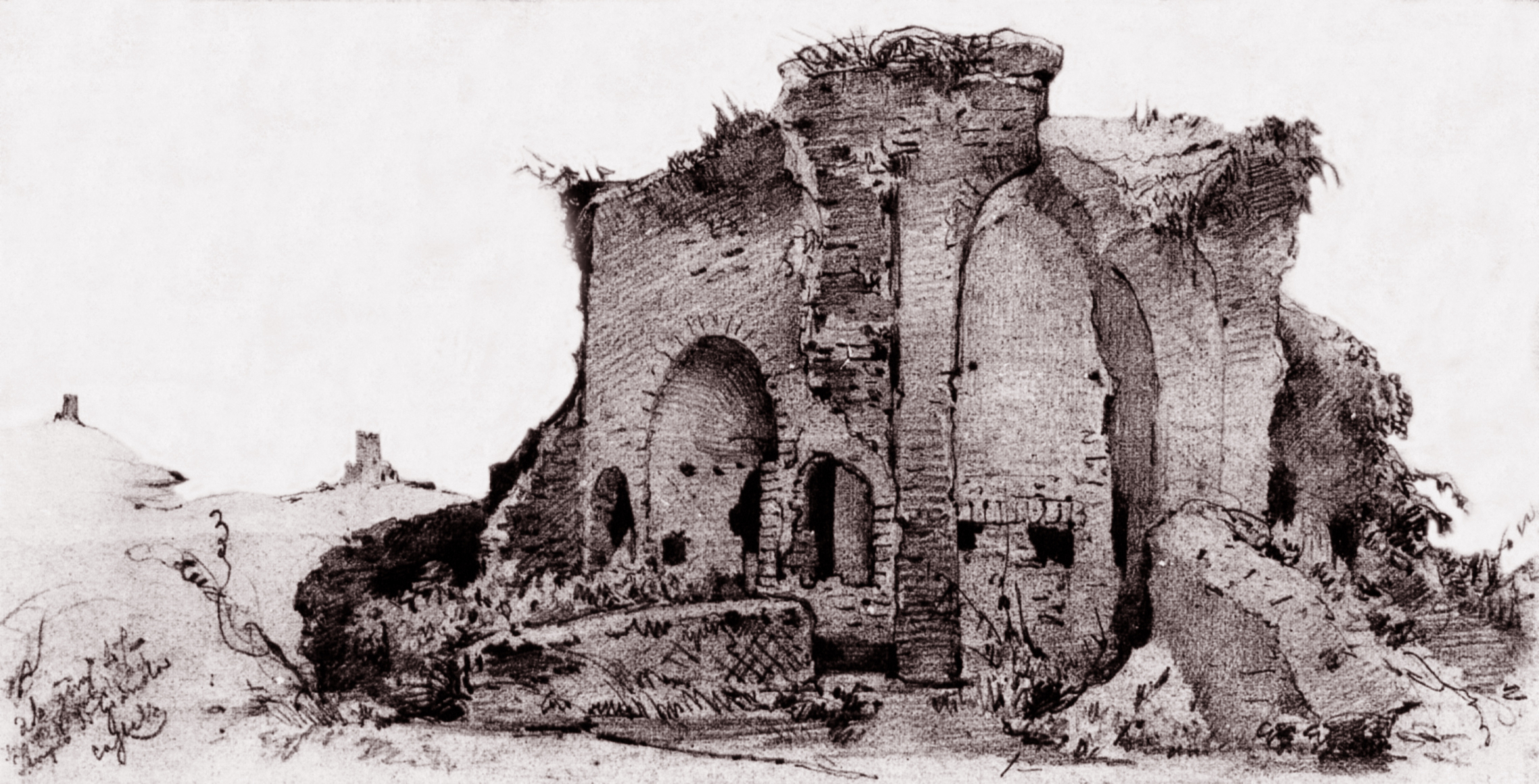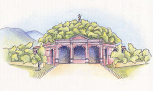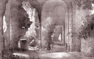 Nell’immagine i ruderi dell’edificio ottagonale in un disegno del Mattej del 1847