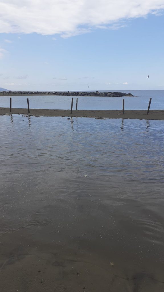 inusuale riduzione dello spazio a disposizione dei bagnanti, ma soprattutto un ristagno delle acque che ha già causato seri problemi igienico sanitari ad alcuni frequentanti la spiaggia (una bambina ed una ragazza che hanno contratto un esteso eritema su ampie zone del corpo, dovendo ricorrere a cure farmacologiche specialistiche).
