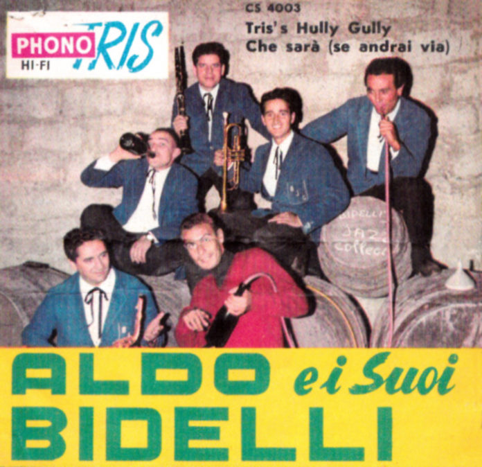 La copertina di un 45 giri inciso con il gruppo “Aldo e i suoi Bidelli”
