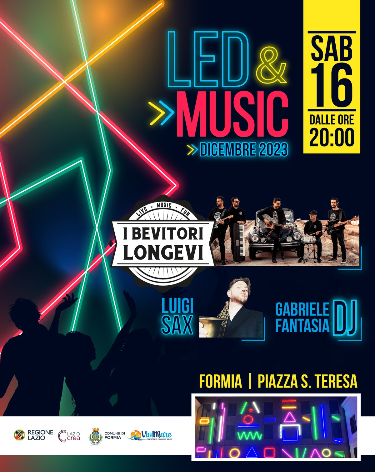 Programma eventi Formia Natale 2023 – Tutto quello che c’è da sapere – Due ore dopo (ore 20.00) si ritorna a ballare in Piazza Santa Teresa con “Led & Music”, con il