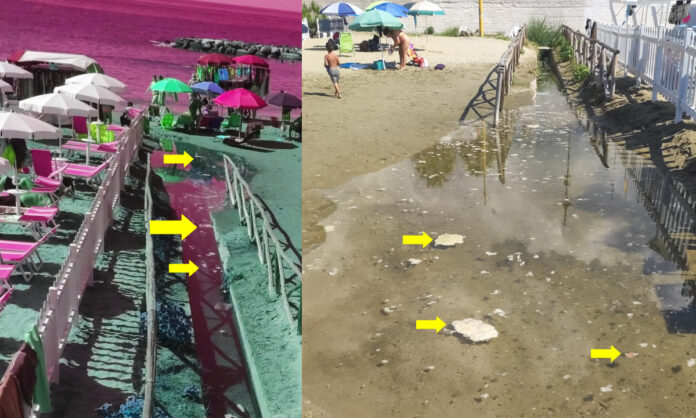 Un bagno tra acqua dolce e acqua salata, il tutto condito da schiuma galleggiante – Le foto inviate in redazione e modificate di tonalità al fine di rendere ben visibile la schiuma, mostrano una spuma bianca in un rivolo d’acqua (forse acque piovane) che pian piano incontrano le onde del mare. La triste poesia fa da cornice alle foto scattate questa mattina a Gianola di Formia. Non sappiamo se è mucillagine o altro, l’unica cosa certa è che farsi il bagno in quel contesto non è sicuramente il massimo.