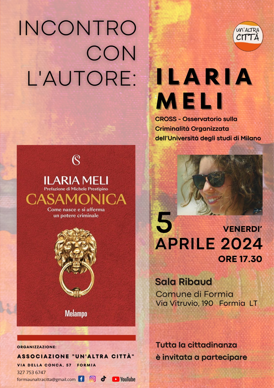 Venerdì 5 aprile a Formia, alle ore 17.30 presso la sala consiliare Ribaud del comune di Formia, l’autrice di “Casamonica- Come nasce e si afferma un potere criminale” dialogherà con Paola Villa, consigliera comunale di Formia per il gruppo “Un’Altra Città “.