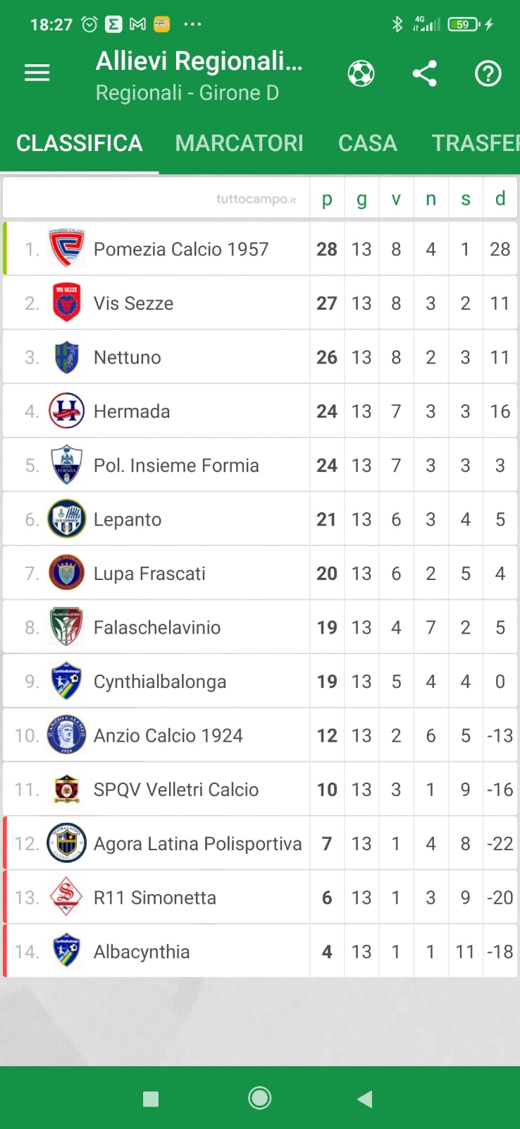 Un sabato significativo per tutto il campionato allievi regionale girone D under 16 dove milita Insieme Formia. È giunta la prima sconfitta in campionato contro il Lepanto della capolista Pomezia (1 a 0) e ora classifica corta che in soli 4 punti racchiude ben 5 squadre, tra cui l’Insieme Formia, che ha affrontato l’A.S.D. Lupa Frascati. Successione delle reti: nel primo tempo goal di Luigi Esposito e di Koen Samuel Caliman. Nel secondo tempo accorcia le distanze la Lupa Frascati per il momentaneo 2-1 e poi sigla il 3-1 finale Luigi Esposito che attualmente con questa doppietta è in testa alla classifica capocannoniere del girone con 11 goal a pari merito con un giocatore dell’Hermada. L’allenatore Mister Giovanni Zampella ora chiederà ai suoi la massima concentrazione per giocarsi sino alla fine la possibilità, ora concreta, di poter terminare al meglio. Oggi è terminato il girone d’andata e dalla prossima partita Insieme Formia sarà impegnata nel girone di ritorno.