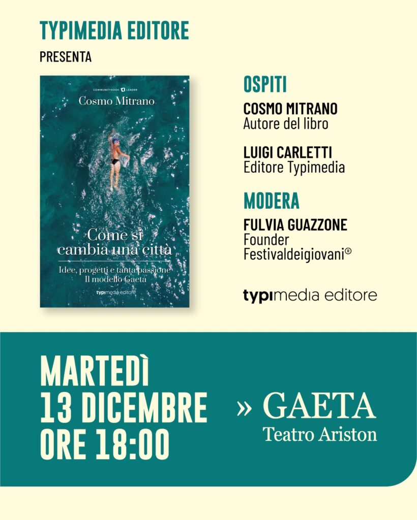 E ancora: la necessità di ideare un modello di turismo in grado di funzionare non solo un mese all’anno ma nelle quattro stagioni. E infine, la pandemia e la necessità di affrontare l’emergenza inventandosi spesso soluzioni su misura, perché in provincia si rischia di essere dimenticati. Cosmo Mitrano, sindaco di Gaeta fino al giugno 2022, in questo libro autobiografico racconta la sua esperienza alla guida di una città che è certamente una delle perle del Tirreno ma anche un ideale confine tra l’Italia che funziona e quella che funziona molto meno. Come si cambia una città. Idee, progetti e tanta passione: il modello Gaeta, il primo volume della nuova collana CommunityBook – Leader, è un racconto autentico come autentico è il personaggio Mitrano, “sindaco di tutti e per tutti”, ma anche tecnico competente, politico fuori dagli schemi e amministratore pubblico in grado di entrare in tutti i meccanismi di governo di una comunità, anche quelli più complessi e spesso difficili da conciliare con la necessità di dare risposte rapide ed efficaci ai cittadini. Come si cambia una città. Idee, progetti e tanta passione: il modello Gaeta, di Cosmo Mitrano, è la condivisione di un’esperienza durata dieci anni che potrebbe essere presa a modello da molti amministratori locali. Un’esperienza in cui capacità d’ascolto, dialogo e creatività costituiscono una formula che funziona a qualsiasi latitudine”. Bene, con l’augurio che il prossimo libro sia “Come si cambia una Regione”!