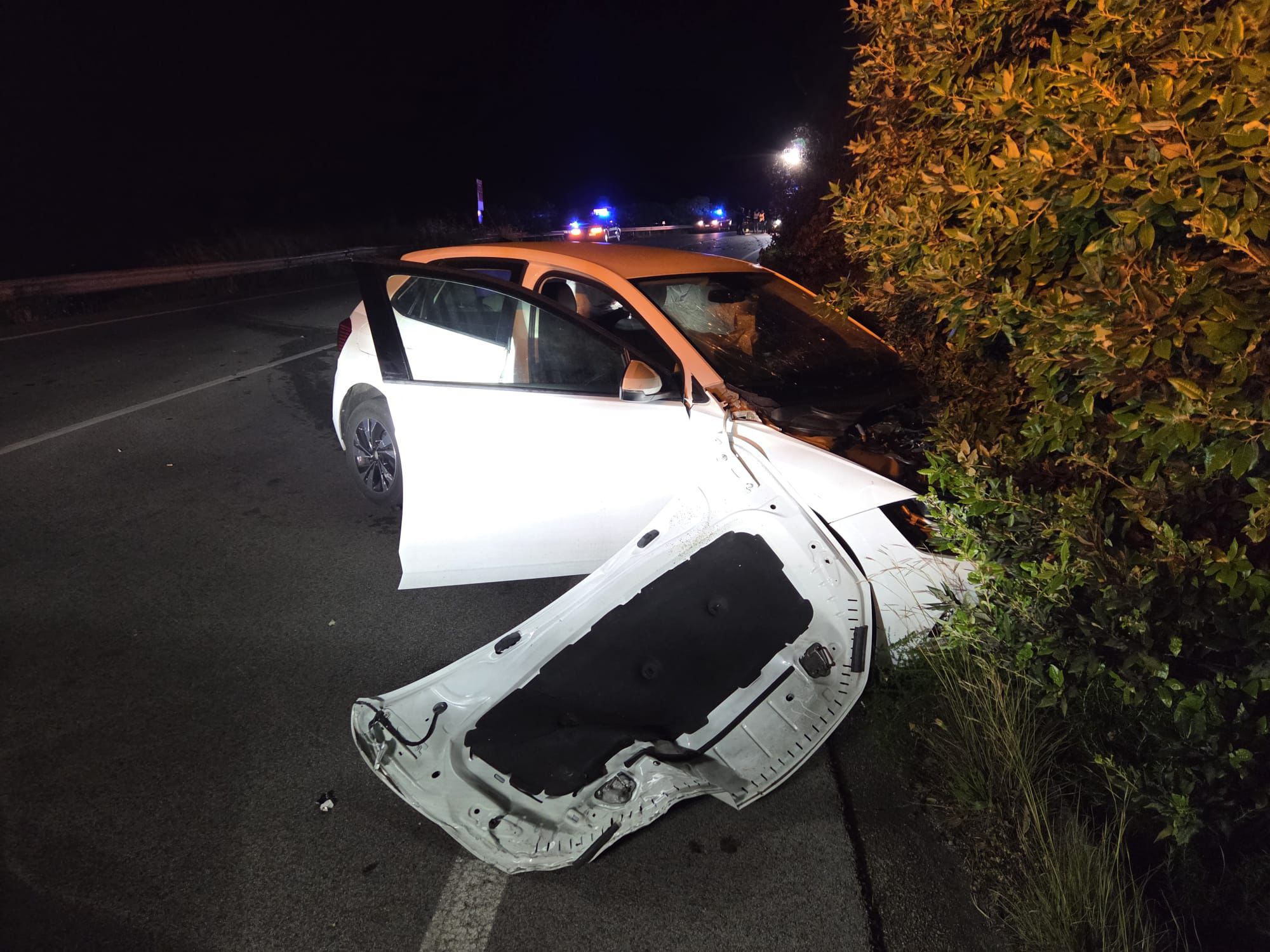 Più grave l’episodio avvenuto nella notte tra il 25 e il 26 aprile lungo la strada Flacca, al chilometro 24, alle porte della città. Due auto – una Volkswagen Polo e una Ford – sono rimaste coinvolte in un violento scontro. Le immagini mostrano detriti sparsi sull’asfalto, mezzi danneggiati e l’intervento dei soccorritori. Sul luogo dell’incidente sono intervenuti i Vigili del Fuoco e la Polizia Stradale, che hanno lavorato per mettere in sicurezza l’area, prestare assistenza e ricostruire la dinamica del sinistro. La circolazione ha subito rallentamenti per consentire le operazioni di soccorso e rimozione dei veicoli.