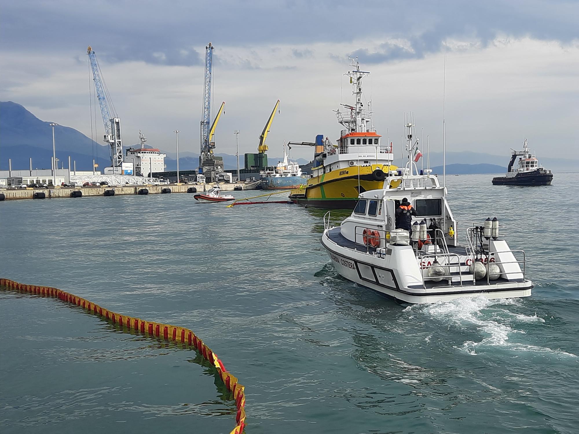 Venivano così allertati le squadre dei Vigili del fuoco, il rimorchiatore portuale in servizio di guardia ed il rimorchiatore “Bino”, mezzo dotato di dispositivi di lotta all’inquinamento marino, appositamente dislocato nel porto di Gaeta nell’ambito della convenzione attivata su tutto il territorio nazionale dal Ministero della transizione ecologica.