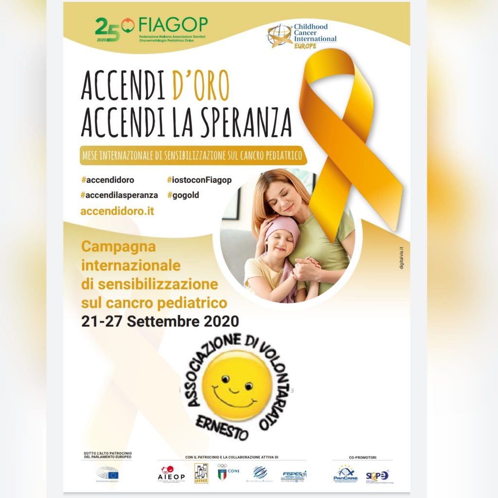 Oncoematologia Pediatrica – lancia la sua annuale campagna nazionale di sensibilizzazione “Accendi d’Oro, accendi la speranza”, nell’ambito del “Settembre d’Oro mondiale dell’Oncoematologia pediatrica – Childhood Cancer Awareness Month”, promosso dal network di associazioni di genitori Childhood Cancer International, di cui FIAGOP è tra i soci fondatori, SIOPE – the European Society for Paediatric Oncology, PanCare – Pan- European Network for Care Survivors after Childhood and Adolescent Cancer.
