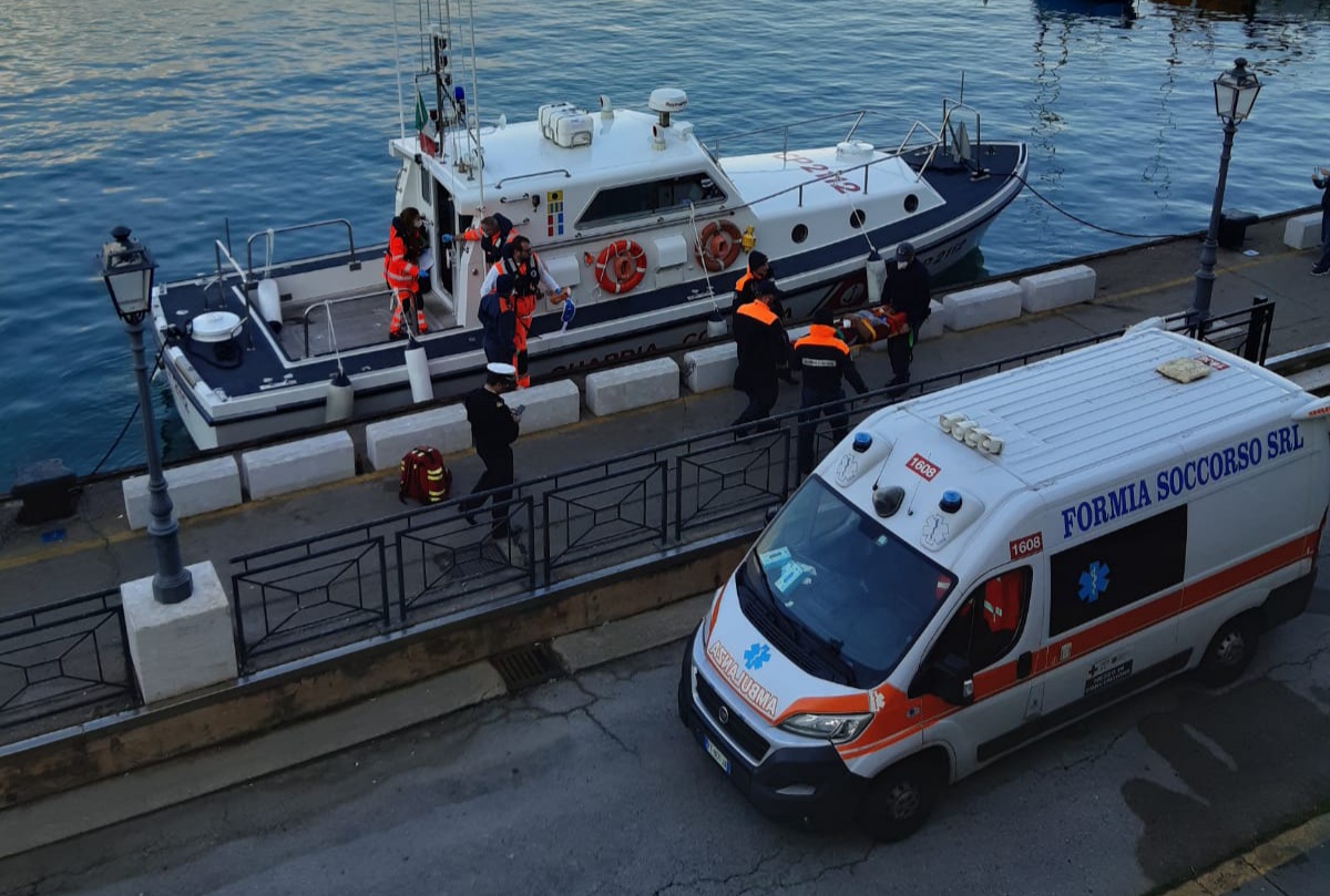 Raggiunto ed affiancato il peschereccio, la motovedetta CP 2112 consentiva il passaggio dei sanitari sull’unità soccorsa per prestare le prime cure al marittimo infortunato, il quale veniva poi trasbordato sulla motovedetta e, con la costante assistenza del personale medico, trasportato presso la banchina Caboto del porto di Gaeta, ove era atteso dall’ambulanza che, nel giro di pochi minuti, lo trasportava presso il nosocomio di Formia. Al momento dell’arrivo in banchina il malcapitato era cosciente.
