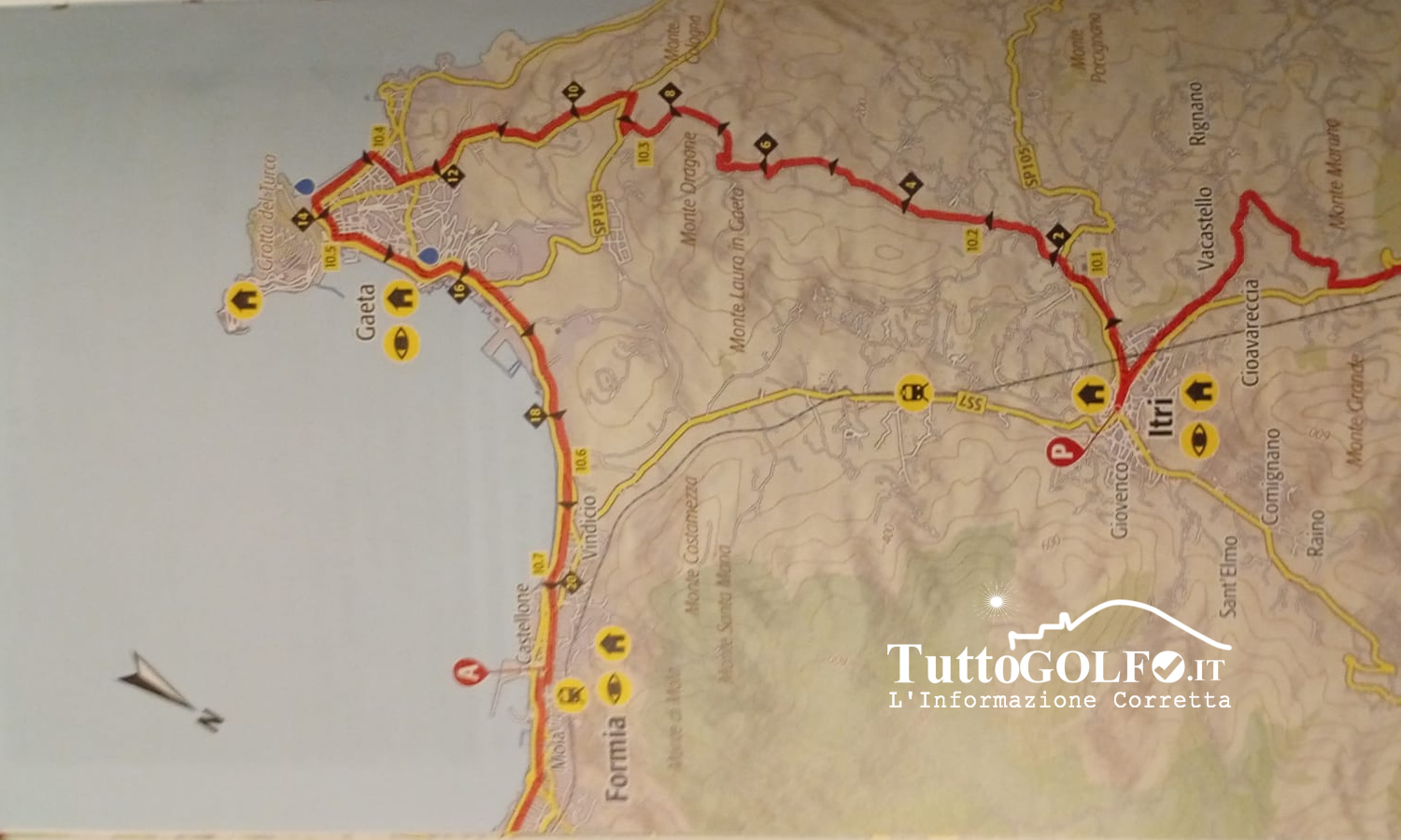 Nella nuova mappa il percorso da Fondi a Formia è stato rivisto e da Itri segue un nuovo