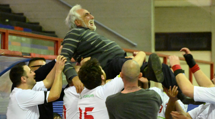 Ancora pochi secondi ed i ragazzi di coach Macera hanno ancora la possibilità di pareggiare i conti ma la difesa si erge davanti ad un monumentale Roberto Monti e diventa un muro invalicabile, i secondi trascorrono e la sfera termina lentamente sulla linea laterale con il suono della sirena che sancisce la parola fine, il 20-19 per Usai e compagni, i quali fanno partire la festa in campo con i piccoli atleti biancorossi a centrocampo come di consuetudine a cantare in cerchio “c’è simpatia tra di noi, c’è simpatia se tu lo vuoi”, dopo aver fatto saltare goliardicamente in aria coach Viola sullo stile di Oronzo Canà nel film “allenatore nel pallone”.