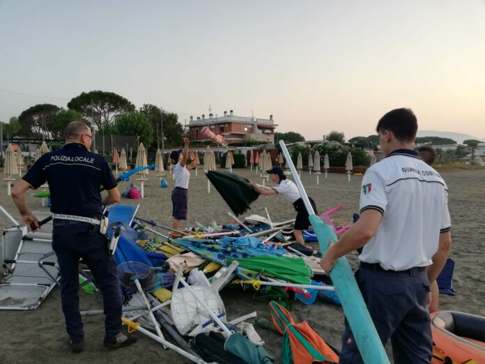Da ultimo, nelle prime ore della mattinata di oggi, 16 agosto, è stata eseguita un’operazione congiunta con gli agenti della Polizia Locale e la collaborazione di alcuni operai del Comune, che hanno rimosso oltre 500 attrezzature balneari fissate stabilmente in maniera diffusa su un ampio arenile libero con 400 mt di fronte mare, con sistemi di ancoraggio anche non facilmente eliminabili.