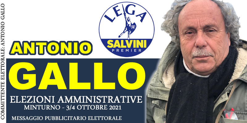 Il professore Antonio Gallo, responsabile Ambiente del Direttivo della Lega di Minturno, è candidato nella lista della stessa Lega alle comunali del 3 – 4 Ottobre 2021 a sostegno del candidato sindaco Massimo Moni.