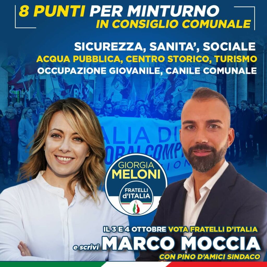 Mi candido nella lista di Fratelli d’Italia, il mio partito del quale sono dirigente regionale del dipartimento professioni, a sostegno del nostro candidato sindaco Pino D’Amici, mi candido per questo meraviglioso paese che mi ha adottato, sono napoletano ma minturnese di adozione e voglio mettere a disposizione la mia esperienza e la mia voglia di fare per cambiare tutto, perché Minturno merita di più”.