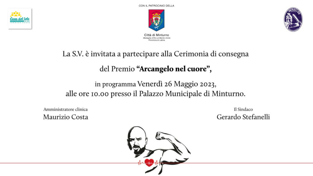 Un appuntamento che vede la firma della Casa del Sole Tommaso Costa fondata nel 1928 a Formia, il Comune di Minturno e la società sportiva Heracles di Formia. Arcangelo Moscaritolo, al quale è dedicato il premio, era un dirigente storico dell’Heracles (fratello del presidente in carica) deceduto a soli 32 anni, per un incidente tragico. In suo onore vi è stato un bando che ha visto un vincitore di un contratto di formazione-lavoro. Il Comune di Minturno ha voluto fermamente che la cerimonia si tenga nella sala consiliare minturnese. E infatti il sindaco Gerardo Stefanelli firma l’invito insieme al medico Maurizio Costa, amministratore della Clinica – Casa del Sole.