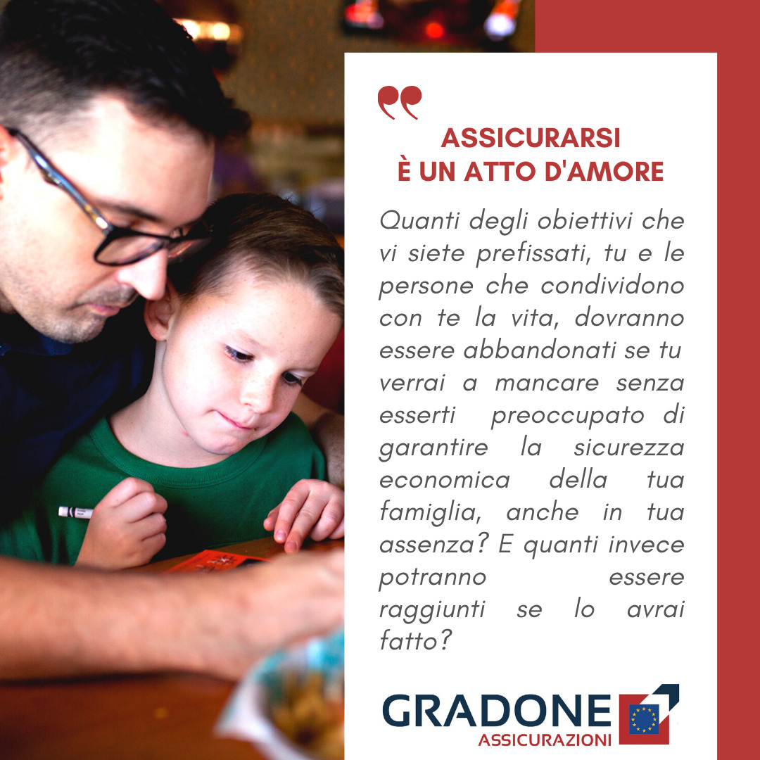 Sai che l’INPS riconosce al coniuge superstite il diritto alla pensione indiretta (quando tu hai maturato 15 anni di anzianità assicurativa e contributiva oppure 5 anni di anzianità assicurativa e contributiva, di cui almeno 3 anni nel quinquennio precedente alla tua scomparsa. Ma sai anche che l’importo effettivamente percepito dal coniuge superstite dipende dalla sua situazione familiare e dal suo reddito? Conoscere la tua situazione contributiva INPS ti permette di sapere su quali entrate potrà contare la tua famiglia se tu venissi a mancare e di conoscere di quali capitali avrà bisogno per portare a compimento i progetti che avete iniziato insieme: ad esempio per permettere ai tuoi figli di laurearsi e a tua moglie di estinguere il mutuo. Chiamaci e ti elaboriamo gratis il Report Previdenziale. UNIPOLSAI – GRADONE ASSICURAZIONI