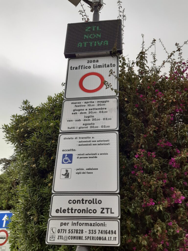 Ciò premesso va evidenziato che per coloro che entrano a Sperlonga il cartello di ZTL è non rilevato dagli automobilisti distratti che procedono nel percorso. Per coloro che non vogliono commettere infrazioni occorre procedere in direzione Fondi e poi accedere a Sperlonga dall’altro lato.