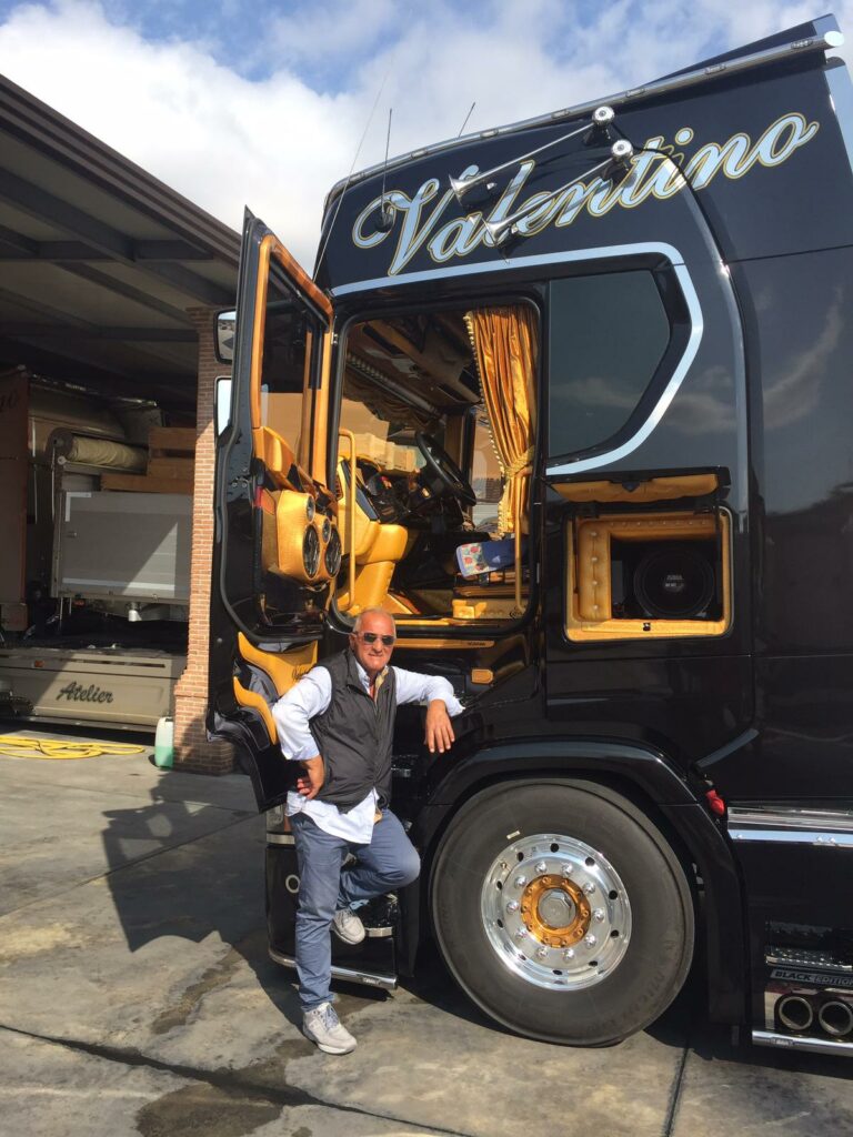 Ad esempio, il mio camion, si chiama Ulisse ed è dedicato alla Riviera di Ulisse in quanto sono residente a Formia e naturalmente all’Odissea che mi ha sempre affascinato. In particolare, il ritorno di Ulisse quando vedendo Penelope contesa dai Proci li sfida e col dardo che attraversa l’anello di 12 scuri in fila, vince la sfida col suo arco”. E’ così che hai concepito la tua vita? “Beh si”. Sei soddisfatto di quello che hai costruito, dei tuoi collaboratori? “Naturalmente. I collaboratori, gli autisti, lavorano bene. Sono bravi”. Hai vinto premi? “Il premio Scania 2020 a Trento per i 50 anni del motore V8. Il premio Misano “Grand Prix Truck”. Partecipiamo a concorsi e premiazioni col team”. Hai differenziato in altre attività? “Si, trasporti funebri Iorio/Valentino e l’ autoparco della Valentino trasporti”. Cosa consiglieresti a un giovane imprenditore? “Di lavorare, impegnarsi, crederci e restare umili, semplici. Di non montarsi la testa. Ricordare chi è meno fortunato e aiutare chi è nel bisogno. Se posso tendo sempre una mano”. Alfonso ti piacerebbe se io scrivessi un libro sulla tua vita? “Perchè no? Ho tanto da esprimere e da raccontare. I giorni li ho consumati vivendo intensamente”. Un imprenditore, esempio per i giovani.