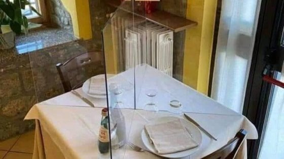 Per i ristoranti in genere Antonio De Marinis, designer di Acquaviva delle Fonti che lavora soprattutto per ideare arredamenti per negozi e per la ristorazione, ha proposto un tavolo suddiviso dai vetri. In questo modo almeno io mi sentirei sola anche se in realtà non lo sono, meglio stare a casa che se ti senti solo hai smartphone, telefono ed internet per chiacchierare con qualcuno.
