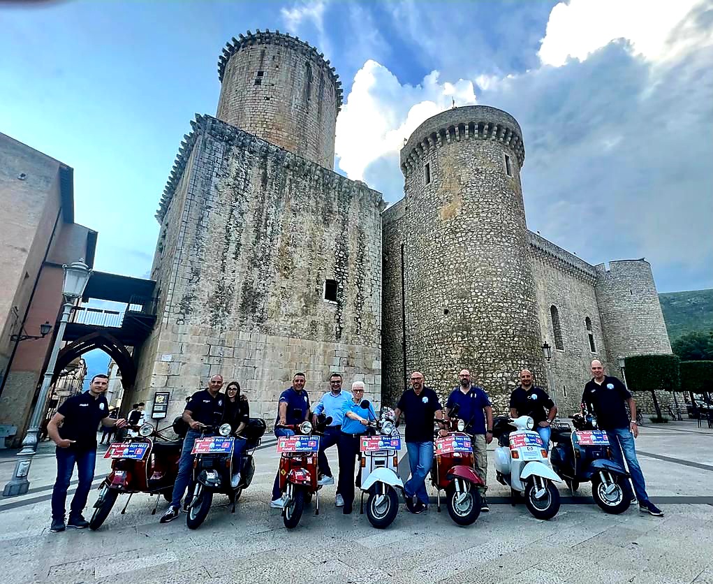 Alla presentazione ha partecipato il sindaco di Fondi Beniamino Maschietto, che ci ha tenuto a salutare i vespisti fondani stringendo loro la mano e augurando a tutti buon viaggio. L’incontro si è concluso con una foto simbolica ai piedi del Castello Caetani.