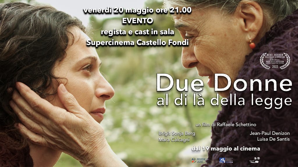 Due donne al di là della legge: venerdì 20 maggio proiezione al Supercinema Castello di Fondi – Sarà proiettato in anteprima nazionale al Supercinema Castello di Fondi “Due donne al di là della legge” il film girato a Fondi premiato con il Gold Award alla regia alla 55° edizione del WorldFest di Houston. In sala sarà presente il regista Raffaele Schettino che incontrerà il pubblico e sarà simbolicamente premiato dal sindaco di Fondi Beniamino Maschietto e dall’assessore alla Cultura Vincenzo Carnevale.