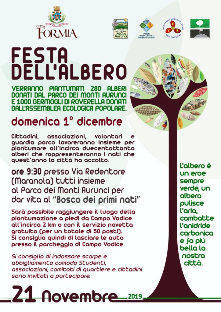 Un prezioso regalo dell’Amministrazione Comunale per i 280 bambini nati a Formia nell’ultimo anno. Domenica 1° dicembre presso la Via del Redentore a 2 km dal centro di Maranola si darà vita al “Bosco dei Primi Nati” 2019, saranno piantati non solo 280 alberi ma anche 1000 germogli di roverella.