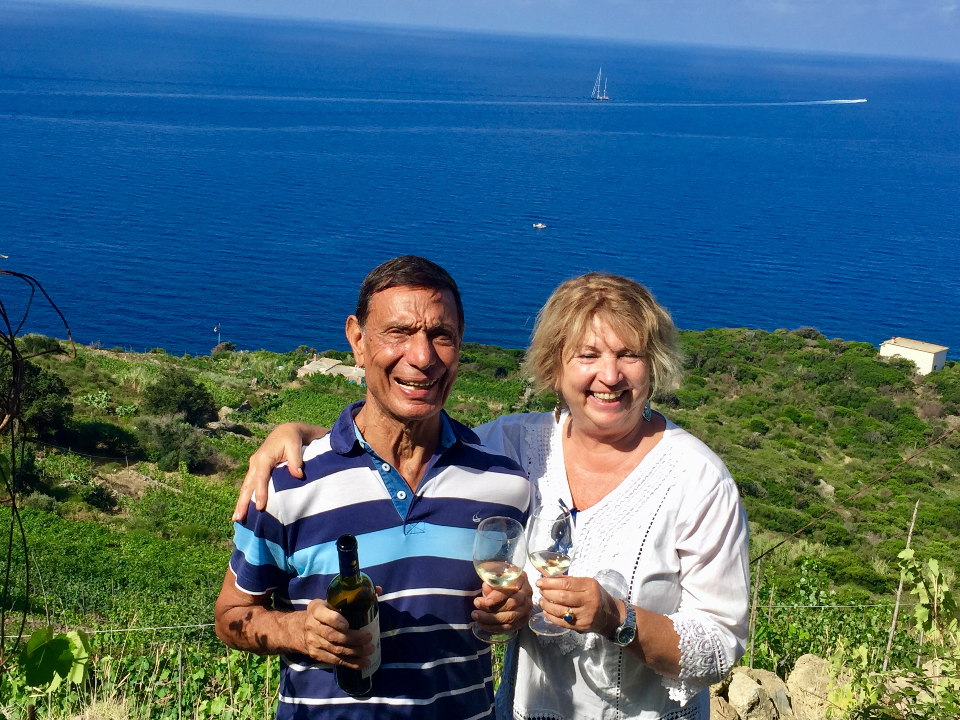 Ho molti ricordi della mia infanzia in questa isola e soprattutto nel vigneto, siamo stati sfollati a Ponza e ricordo vivevamo senza elettricità accendendo la sera una lampada a petrolio. Poi siamo tornati a Napoli dove ho frequentato le scuole e l’Università, infine dove ho svolto la mia professione di medico. Quando ho ereditato il vigneto e sono tornato a Ponza ho sentito subito la voglia di farlo rinascere, cosi, avvalendomi di esperti e soprattutto della straordinaria competenza dell’enologo Vincenzo Mercurio, ho scoperto la storia del vigneto e ho cominciato a fare il vino: 300 litri. Ci siamo appassionati, abbiamo iniziato ad acquistare i terreni abbandonati vicino al nostro e alla fine abbiamo creato un vigneto di tre ettari. Tanti sono i costi e i problemi che abbiamo, come il venir meno costantemente dei terrazzamenti che dobbiamo rifare spesso, ma ad aiutarci ci sono straordinarie persone che amano questa terra, come Salvatore e Antonio, i due contadini sempre pronti a ripristinare i terrazzamenti e senza i quali questo vigneto non sarebbe lo stesso. Inoltre ogni ristorante dell’isola ha una mia bottiglia e sento di aver creato assieme ai ponzesi qualcosa di antico e magico, come il mio vigneto. Ovviamente la commercializzazione è molto ristretta essendo poche bottiglie ma tanto non è questo il mio obiettivo.